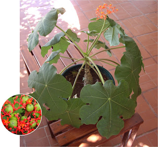 Nombres comunes: Jatrofa (español). Bellyache bush (inglés).